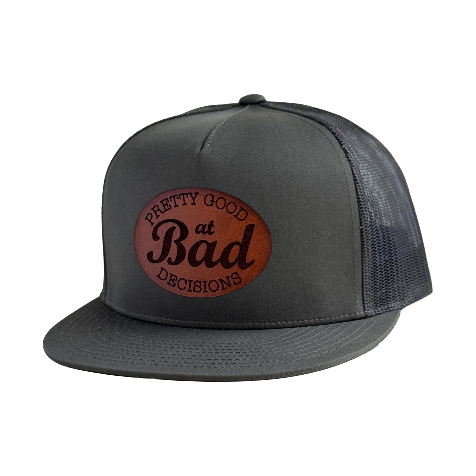 Genuine leather patch with laser engraved text. Choose your preferred style from our selection of snapback hats in various colors.